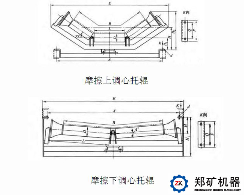 在加料處,為了減少物料對輸送帶的沖擊,應先用緩沖托輥。對于長于50米以上的輸送機,常由于各種原因出現輸送帶跑偏現象。為了避免這種現象,承載托輥每隔10組可裝一組調心托輥。無載分支上每隔5-10組托輥,設置一組調心托輥。