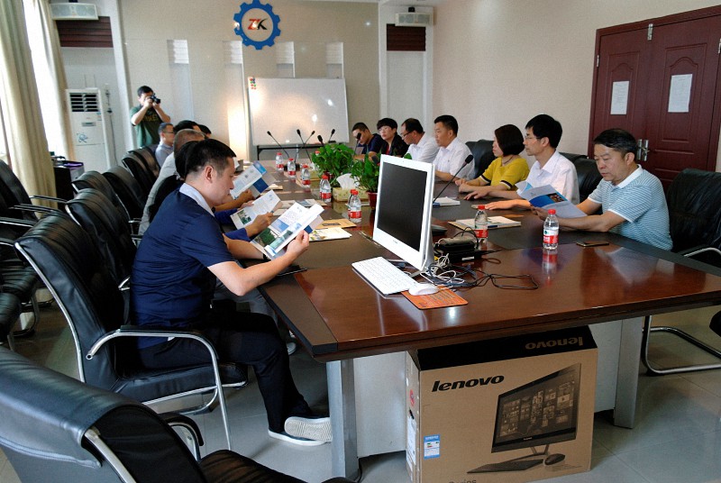 (總經理向省市行業專家、滎陽市委常委岳偉等領導匯報公司發展情況)