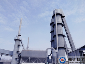石灰石煅燒是由豎式預熱器+回轉窯+豎式冷卻器組成,產量100~1200t/d,物料由預熱器頂部料倉經下料溜管導入預熱器本體內,同時由回轉窯傳入的高溫煙氣將物料預熱至1000℃以上,使石灰石發生部分分解,再由液壓推桿依次推入回轉窯尾部,經回轉窯高溫煅燒后再卸入冷卻器內,通過風機吹入的冷風冷卻,將物料冷卻至環境溫度+60℃以下排出冷卻器。經冷卻器吹入的空氣作為二次空氣進入回轉窯參與燃燒。